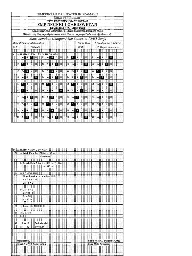 Soal Dan Kunci Jawaban Pengayaan Uas Matematika Smp Semester