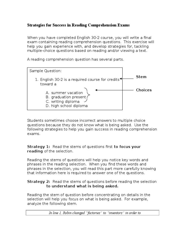 Strategies For Reading Comp Multiple Choice Reading