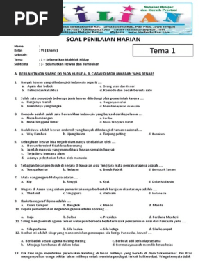 Soal Tematik Kelas 6 Sd Tema 1 Subtema 3 Selamatkan Hewan