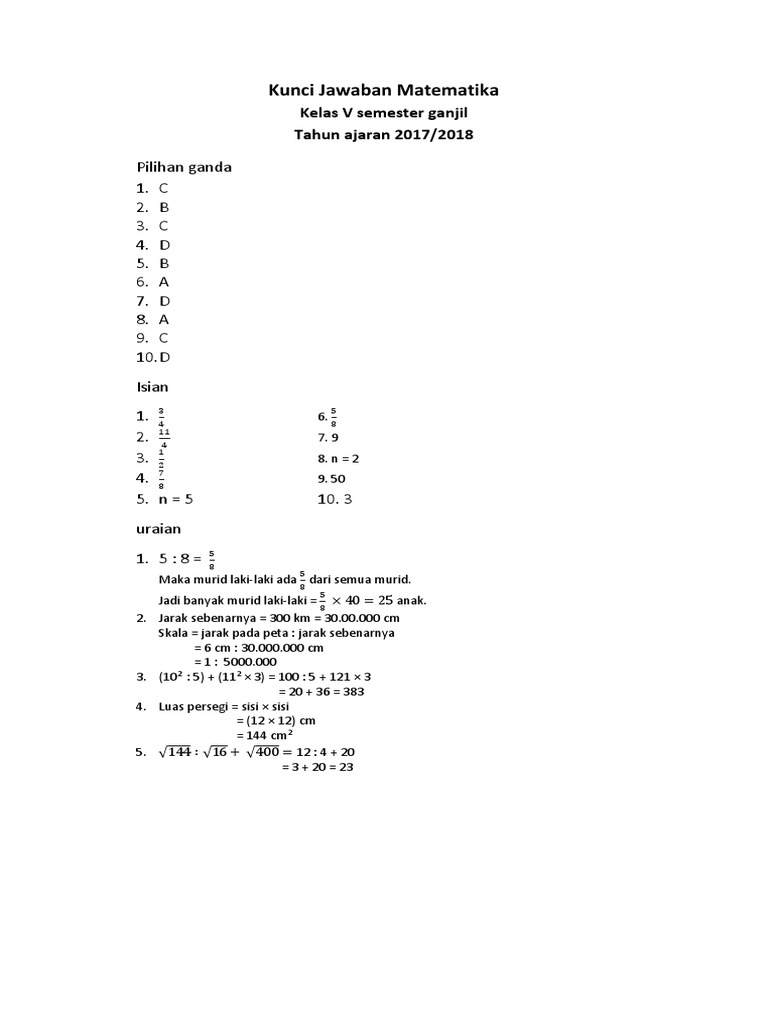 Soal Matematika Kelas 5 Semester 1 Dan Kunci Jawaban 2019