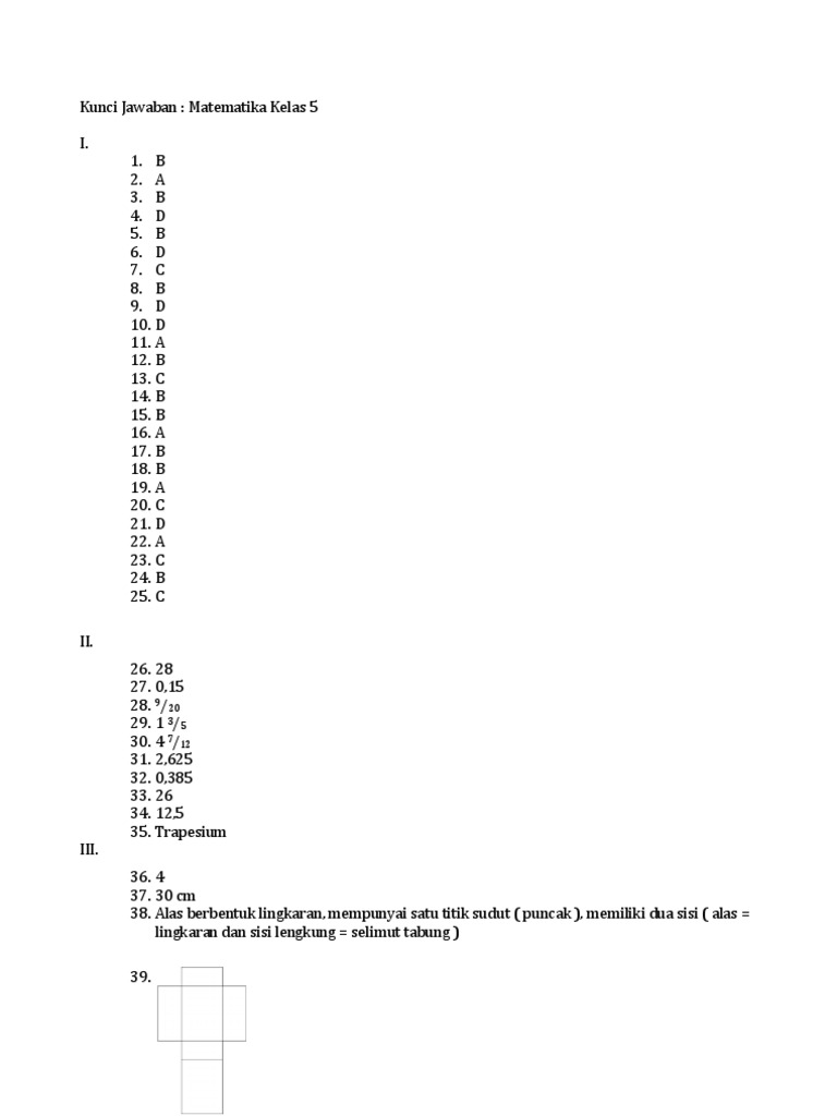 Soal Matematika Kelas 5 Semester 1 Dan Kunci Jawaban