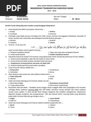 Lengkap Soal Uas Akidah Akhlak Mts Kelas 9 Semester 1 Tahun
