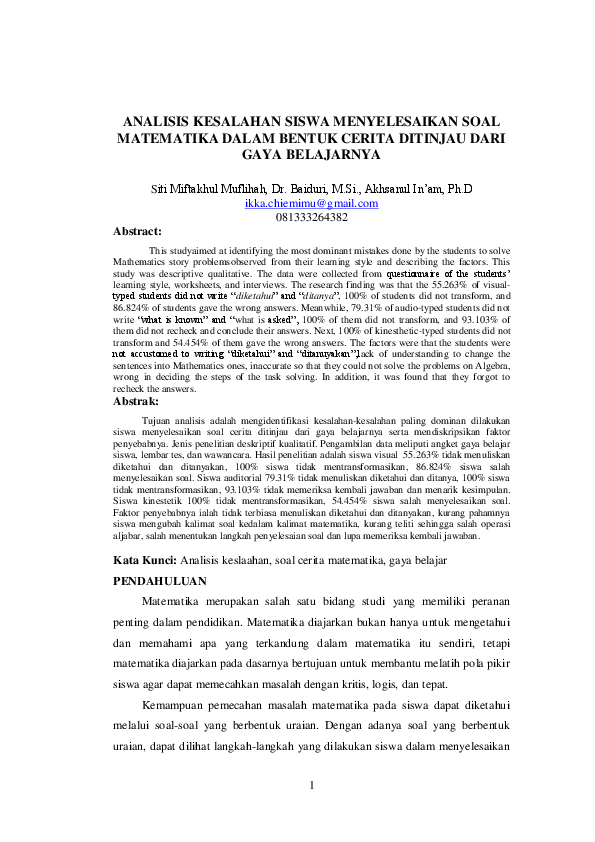Pdf Analisis Kesalahan Siswa Menyelesaikan Soal Matematika