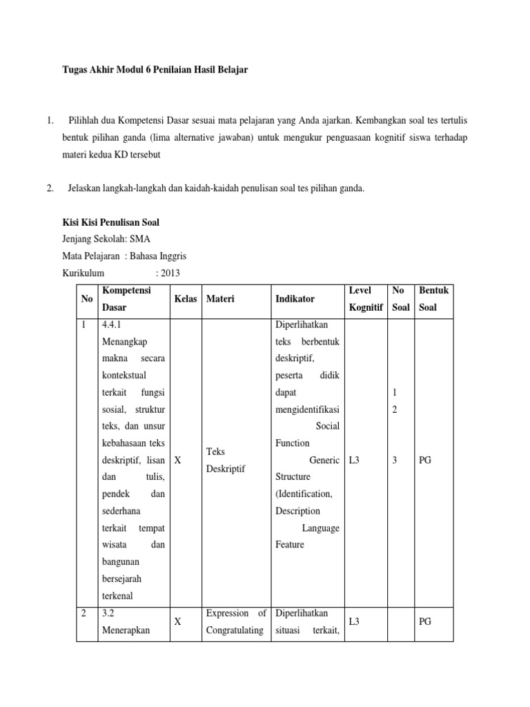Tugas Akhir Modul 6 Penilaian Hasil Belajar