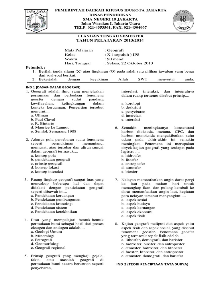Soal Ulangan Ujian Geografi Kelas 10 Semester 1 Uas Geografi Kelas 10 Sma