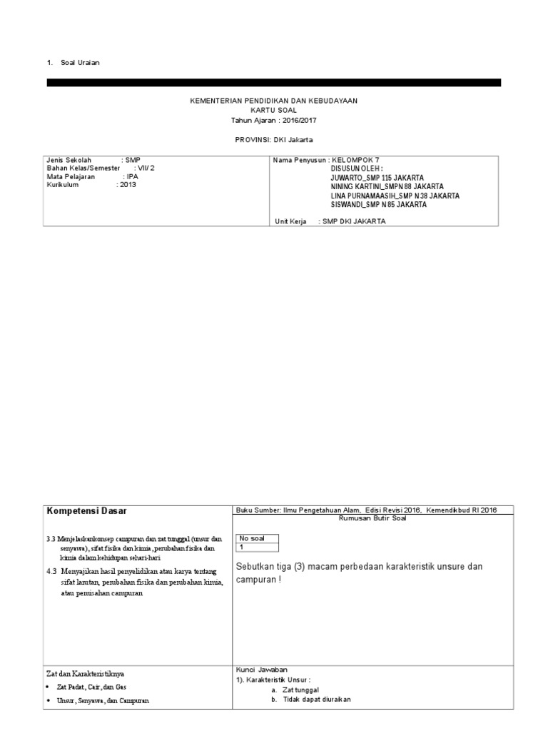 Kisi Kisi Soal Dan Kunci Jawaban Prakarya Smp Kelas 7