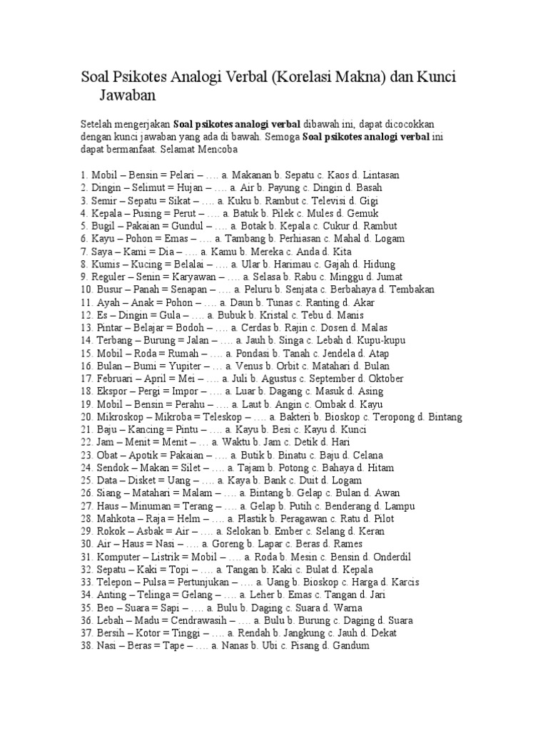 Kumpulan Soal Psikotes Kerja Dan Kunci Jawaban