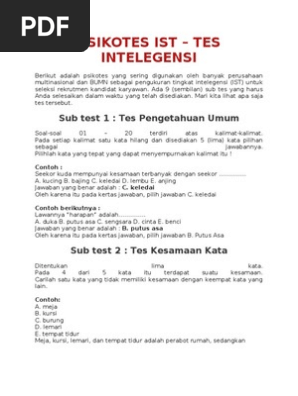 Pdf Psikotes Ist Tes Intelegensi Sub Test 1 Tes