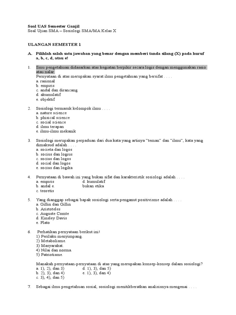 Contoh Soal Uas Sosiologi Kelas X Sma Ma Blog Juragan Les