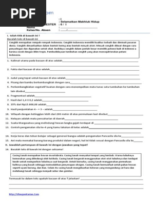 40 Soal Pts Kelas 6 Tema 1 Selamatkan Makhluk Hidup Dan