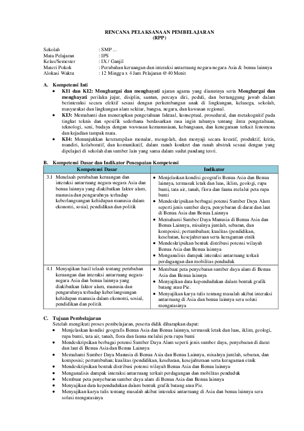 Rpp Ips Kelas 9 Semester Ganjil Tahun Pelajaran 2019 2020