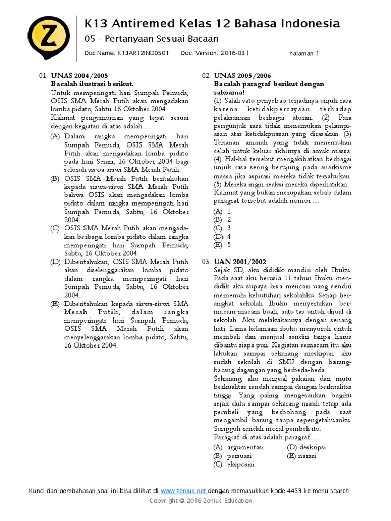 Un Smp 2015 Bahasa Indonesia Zenius Education Tempat